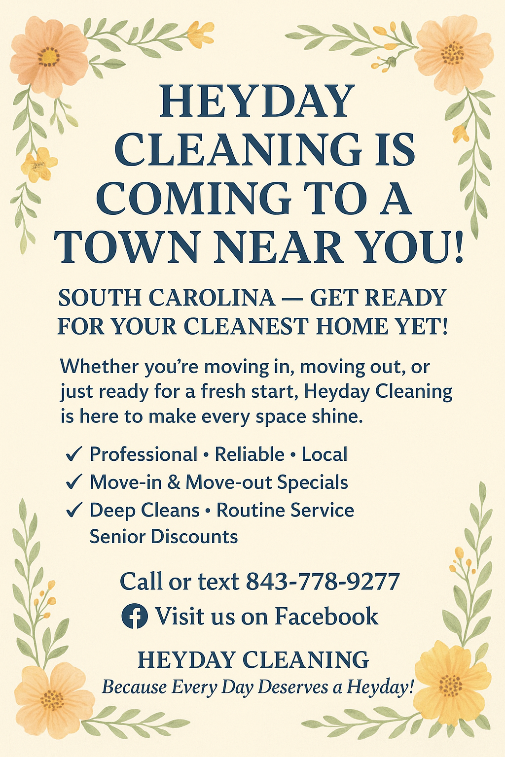 Hey there, I’m Dorie! I have been in and out of the cleaning business for over 30 years, It just keeps calling me back!! I started HeyDay in 2017, but god had other plans. Fast forward to 2021, I started Heyday back up, now servicing mostly NH residents and from there, we have really taken off with over 40 account.. My Husband, Marc, has been the backbone for this business and has been supporting my girls and I through it all! Recently, my husband, our 15 year old son and myself have moved to Myrtle Beach where business is slowly picking up and looks promising to be a success there as well…My youngest daughter, Leah, is still in NH and has started her cleaning business with a few of our customers, my oldest daughter Taylor and her bestie have taken over the remaining HeyDay accounts in NH! My oldest son, Cameron, lives in California, but, he creates the posters and Heyday Logo and helps with some of the technical work (His strong suit)! My youngest son, Nick, has helped with a couple of jobs, but he now has a job of his own and is still in school. Lastly, my grandson, Bennett, has come along to help with rentals, is the official Heyday Ambassador and sports our Heyday Merch!